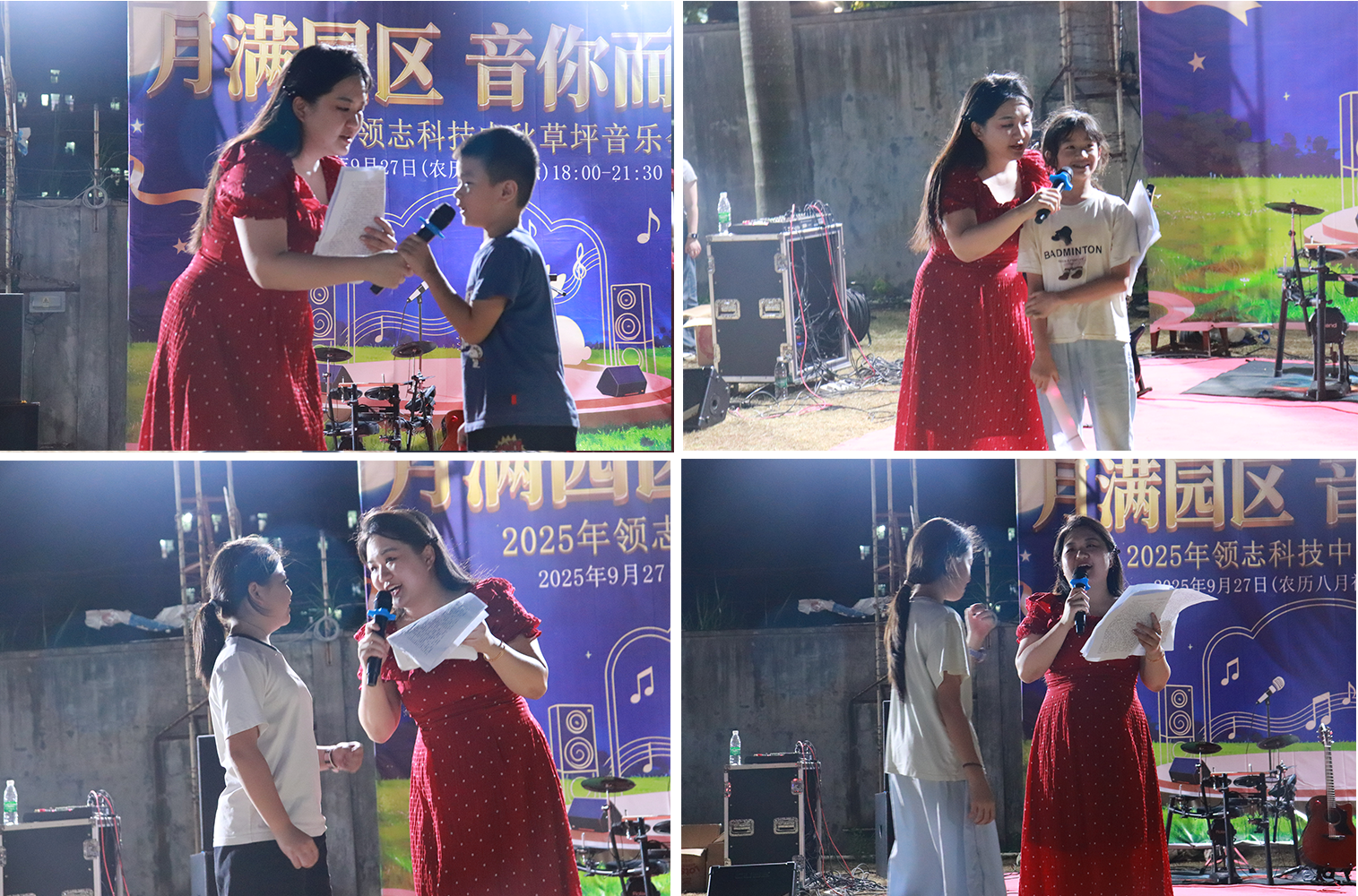 傍晚时分,草坪上早已布置妥当:露营椅、闪烁的串灯、飘着香气的茶点,处处透着节日的精致。随着熟悉的身影走上舞台,主持人刘颖以温暖的开场白点燃全场氛围:“中秋是团圆的日子,今天我们以音乐为桥,把领志大家庭的每一份心意串联起来,希望今晚的歌声与月光,能成为大家最难忘的回忆。” 简单的话语里,满是对员工的关怀,也让现场的期待值瞬间拉满。