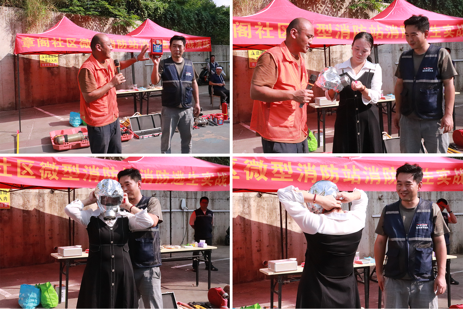 理论知识学习后,演习进入实战环节 —— 逃生演习和救人演习。模拟 “宿舍楼”,浓烟扩散,部分人员被困” 的场景,全体参与者按照预定方案开展演练: